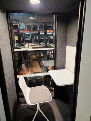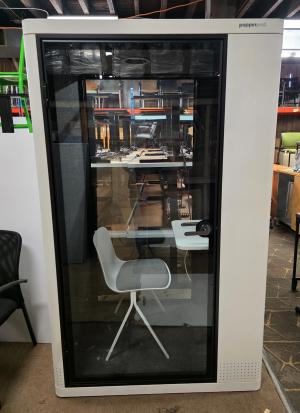 Need a quick escape from the buzz of the open office? The Poppin Pod for 1 creates an instant personal retreat. Step inside and let the motion-activated lights and fans create a calm, focused atmosphere. Whether you're taking a private call or working through a big idea, the standing-height desk supports your workflow without interruption. It's compact, comfortable, and ideal for solo work that deserves your full attention.